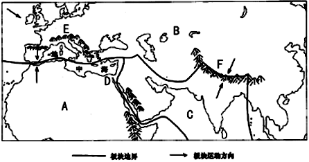 (2)图中山脉F为山,请运用板块构造学说的观点,解释F山脉是由板块和板块挤压形成。
