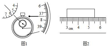 2.图1中,秒表的读数为s,小敏用刻度尺测量物体长度,如图2,物体长度为cm。