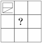 左侧有一大方块,内有九个小方格,左上角的画面为初始画面,有问号的小方格为欲知画面的方格。初始画面必须向右或向下做连续翻转,且每隔一线翻转一次,直到求出在问号位置的画面为止,在右边五个答案中,有一个画面即为在问号位置的画面,请你将这个画面找出,然后选出正确的答案是( )