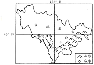吉林省梅河口市自古有采松子、食松子的传统。20世纪70年代来,梅河口农民自采松子,采取手工砸壳的“笨方法”,加工成松子仁,出口国外,松子产业有两个明显的农忙季节。90年代末开始,松子加工机械设备的应用,生产效率大大提高。如今,梅河口已成为全球最大的松子集散地,全世界近七成松子原材料聚焦到梅河口200多家松子加工厂里,机械加工成松子果仁销往世界40多个国家,市场价格偏高,并形成左右世界果仁市场的“梅河价”。如图示意梅河口市地理位置。