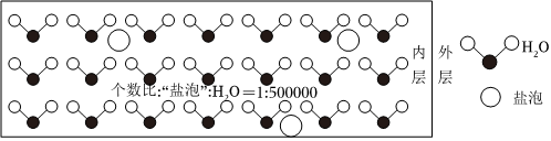 海冰是海水冻结而成的咸水冰,海水冻结时,部分来不及流走的盐分(设以NaCl为主)以卤汁的形式被包围在冰晶之间,形成“盐泡”,其大致结构如图所示,若海冰的冰龄达到1年以上,融化后的水为淡水。下列说法错误的是( )