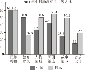 B.2011年中国动漫在表现民族特色方面可以说和日本动漫不相上下,但它蕴含的教育意义却与日本动漫相去甚远。