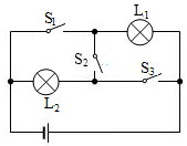 如图所示,要使灯L1和L2串联,应闭合开关S3S3;要使灯L1和L2并联,应闭合开关S1和S2S1和S2;绝对不允许同时闭合开关S1和S3(或S1、S2和S3)S1和S3(或S1、S2和S3)。
