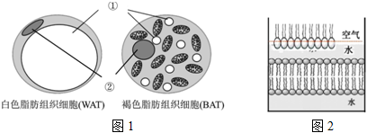 人和哺乳动物体内的脂肪组织可分为白色脂肪组织(WAT)和褐色脂肪组织(BAT),二者可以相互转化。WAT的主要功能是将多余的糖等能源物质以脂肪的形式储存起来。BAT则专门用于分解脂质等以满足额外的热量需求。研究人员对小鼠脂肪组织的代谢进行了相关研究。图1是小鼠WAT和BAT细胞结构模式图。