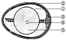 (3)在卵黄表面中央有一盘状的小白点是 ⑤⑤能发育成雏鸡;卵黄外面有 ④④,含有营养物质和水分。(都可填序号)