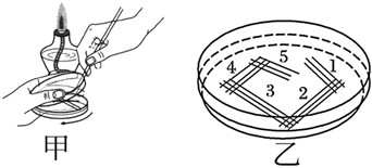 图中甲是稀释涂布平板法中的部分操作,乙是平板划线法操作结果。下列叙述中错误的是( )