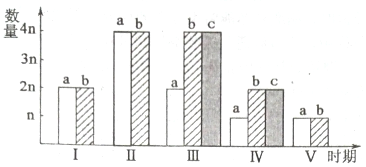 (1)a、b、c中表示染色单体的是cc。Ⅰ至Ⅴ中一定存在同源染色体的时期是Ⅱ、ⅢⅡ、Ⅲ。