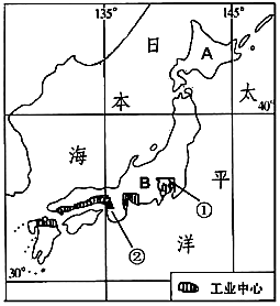 材料一:日本的位置和主要工业中心分布示意图。