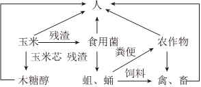 2.如图是某地农民以沼气为纽带建立的农业生态系统。沼气是有机物质在厌氧环境中,通过微生物发酵作用,产生的一种可燃性气体,其主要成分是甲烷。有机物变成沼气的过程主要分为两道工序:首先是分解细菌将粪便、秸秆中的复杂有机物分解成简单有机物和CO2,再在甲烷菌的作用下将CO2还原成甲烷,甲烷菌也从中获得能量而生长。回答下列问题: