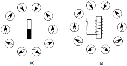 接着他们又用相同的方法,探究通电螺线管周围的磁场及方向,实验操作及现象如图(b)所示。