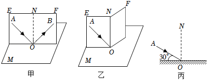如图,甲、乙是“探究光的反射规律”的实验装置。平面镜M放在水平桌面上,E、F是两块粘连起来的硬纸板,且可绕ON转动。