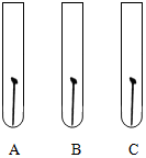 (3)某学生想探究铁生锈是否必须同时有空气和水,他将干净的铁钉放入A、B、C三支干净的试管中,再各加入某些物质或用品进行研究。