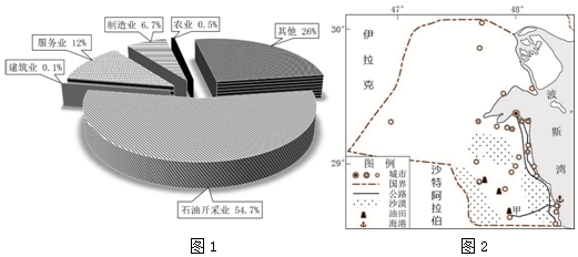 材料二:图1为2018年科威特GDP构成。图2为科威特简图。