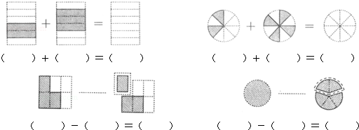 根据图形列式计算,其中上面两题在图形中用阴影部分表示出结果.