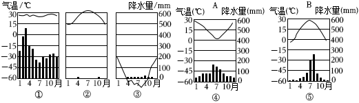 (3)读图④和图⑤,表示④⑤两地的气温和降水,下列表述正确的是。