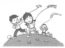 【答案】春天来了,小明、小红和小刚来到野外放风筝。只见他们迎着风,边跑边将风筝放起来。望着天空中飞得高高的风筝,他们高兴地叫着:“看!它们飞得太高了!”