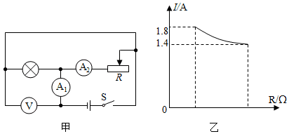 如图甲所示电路,电流表A1的量程为0-3A,A2的量程为0-0.6A,闭合开关S,电压表V示数为12V,小灯泡正常发光。在电路安全的情况下最大范围调节滑动变阻器R的滑片,电流表A1示数与R连入的阻值的关系图象如图乙所示。则小灯泡的额定功率为 14.414.4W,滑动变阻器R连入电路的最小阻值为 2020Ω,当滑动变阻器的滑片置于中点时,电流表A1的示数为 1.61.6A。
