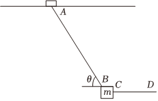 某装配车间通过吊梁移动工件。轻质滑块套在吊梁凹槽内,滑块与吊梁间动摩擦因数μ=33,现用轻质缆绳AB一端连接滑块,另一端吊起质量为m的工件,再通过另一轻质缆绳CD水平缓慢拉动工件,在工件缓慢移动过程中,求: