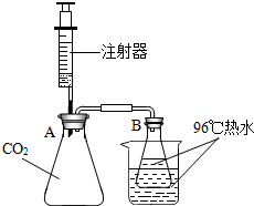 步骤①:如图所示,锥形瓶A盛满CO2气体,锥形瓶B盛有96℃以上但未沸腾的热水,烧杯中加入同样温度的热水(起保持锥形瓶B中水温恒定的作用).