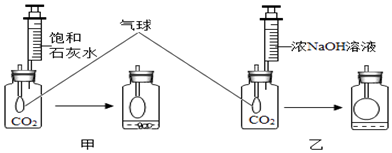 【探究准备】集气瓶2个,针筒2只,气球2个,玻璃管2根,饱和石灰水,浓的NaOH溶液若干。