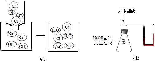 兴趣小组据此设计了图2实验,验证中和反应有水生成:将无水醋酸迅速倒入装有NaOH固体和变色硅胶的试管中,并用玻璃棒在试管中不断搅拌,观察到变色硅胶由蓝色逐渐变为红色,U型管内液面左低右高。