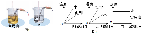 2.图1是“比较不同物质吸热的情况”的实验装置。两个相同的烧杯中分别装有质量相等的水和食用油。