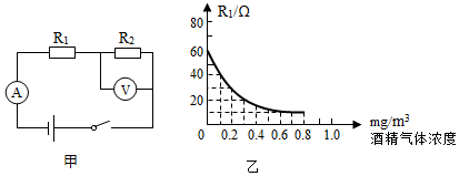 3.“全民拒酒驾,安全你我他”,天门市公安局在宣传交通规则的同时,也加大了对酒驾的查处,如图甲是呼气式酒精测试仪的电路原理图,R1为气敏电阻,它的阻值随酒精气体浓度的变化曲线如图乙,R2为定值电阻,电源电压为9V且保持不变,当酒精气体的浓度为0时,电压表的示数为3V,求:
