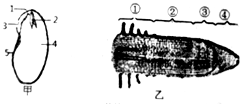 (1)我们把甲图中的1、2、3、4部分组成的结构叫做,它是新植株的幼体.