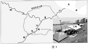 材料一图1为宁波局部地区简图,A地为比较热门的露营地。右下角景观图为A地2022年11月某晴天游客露营照片,很多游客搭上了天幕和帐篷。