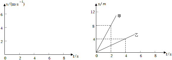 根据图中的s-t图像,在v-t图中画出甲和乙的速度图像。