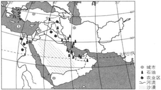 中东地区宗教复杂,物产丰富,是世界上主要的石油输出地区。读图完成9~10题。