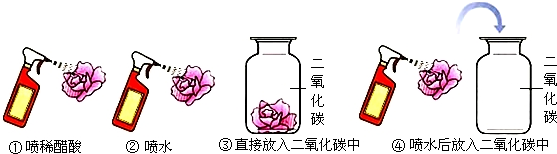 3.如图所示实验中,紫色石蕊喷过的小花变红的是( )