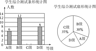 新学期,某校开设了“安全宣传”“心理疏导”等课程,为了解学生对新开设课程的掌握情况,从七年级学生中随机抽取了部分学生进行了一次综合测试.测试结果分为四个等级:A级为优秀,B级为良好,C级为及格,D级为不及格.将测试结果绘制了如图两幅不完整的统计图.