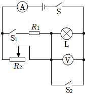 (2)闭合开关S、断开开关S1、S2,电流表示数为0.3A,此时滑动变阻器R2连入电路的阻值;