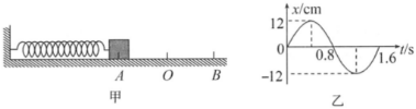 如图甲所示,弹簧振子以点O为平衡位置,在A、B两点之间做简谐运动,取向右得为正方向,小物块的位移x随时间t的变化如图乙所示。下列说法正确的是( )