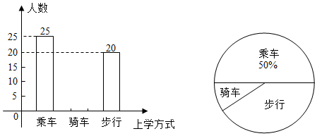 小明就本班同学的上学方式进行调查统计.如图是他通过收集数据后绘制的两幅不完整的统计图.请你根据图中提供的信息解答下列问题: