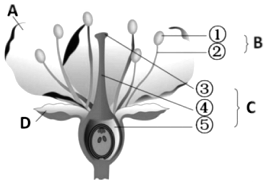 D.完成受精后,A、D以及①②逐渐凋落,③④⑤能继续发育