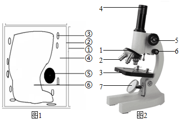 (1)请根据图2显微镜图示,写出与图中数码3、6相对应的结构名称分别是:遮光器遮光器、细准焦螺旋细准焦螺旋。