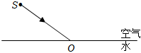 如图所示,一束光从水中斜射到水面,请画出反射光线和折射光线的大致方向。