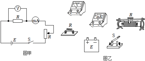 2.图甲为用伏安法测量电阻的原理图。图中,V为电压表,内阻为4000Ω;mA为电流表,内阻为50Ω.E为电源,R为滑动变阻器,Rx为待测电阻,S为开关。