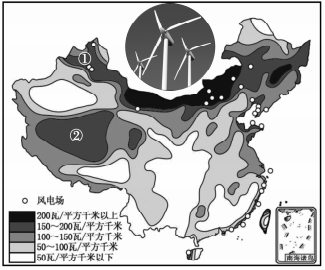 D.②地风能资源匮乏,人烟稀少,几乎没有风电场