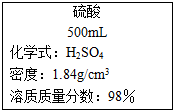 如图是某硫酸试剂瓶标签。下列有关叙述不正确的是( )