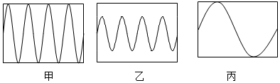 (2)音叉三次发出的声音信号输入同一设置的示波器,示波器展现的波形如图甲、乙、丙所示,其中甲、乙甲、乙两个波形图的音调相同;甲、丙甲、丙两个波形图的振幅相同。