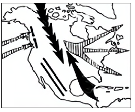(4)墨西哥湾沿岸地区纬度较低,但冬季常出现寒冷天气,那是因为北美洲地势,冬季来自北冰洋的寒冷气流可以长驱南下抵达墨西哥湾沿岸。