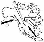 3.美洲西海岸的气候类型呈南北狭长状分布,其主要影响因素是( )