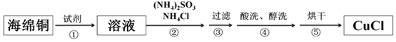 氯化亚铜在干燥空气中稳定,受潮则易变蓝到棕色,微溶于水,难溶于乙醇。以工业海绵铜(主要成分是铜、氧化铜)为原料制备氯化亚铜并回收相关副产品的流程如图。下列说法正确的是( )