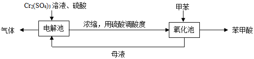 (2)氧化池用于制备苯甲酸。氧化池中1molCr2O72-参加反应,共得到 66mol电子。甲苯可发生氧化反应生成苯甲酸,是因为 甲苯中甲基受苯环影响,而变得活泼甲苯中甲基受苯环影响,而变得活泼。