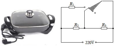3.如图所示电火锅,通过挡位开关(每次同时连接两个接线柱)可以实现高、中、低三挡的转换。已知电阻R2=88Ω,R3=22Ω,高温挡功率为2400W,其热效率为80%。【c水=4.2×103J/(kg•℃)】: