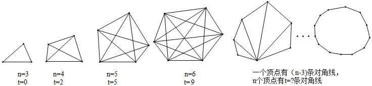 3.如图,先研究下面三角形、四边形、五边形、六边形…多边形的边数n及其对角线条数t的关系,再完成下面问题: