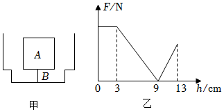 1.如图甲所示,薄壁容器重5N,由上下两段横截面积不同的柱形共轴组合而成,上段横截面积为400cm2,下段高2cm、横截面积为200cm2。物体A是边长为10cm的正方体,杆B竖直放置,上端连着A,下端固定在容器底端,现向容器中缓慢加水,杆B受到物体A的作用力F的大小随水深h的变化规律如图乙所示。忽略杆B的质量和体积,杆B的长度为 cm,当h=12cm,容器对桌面的压强为 Pa。